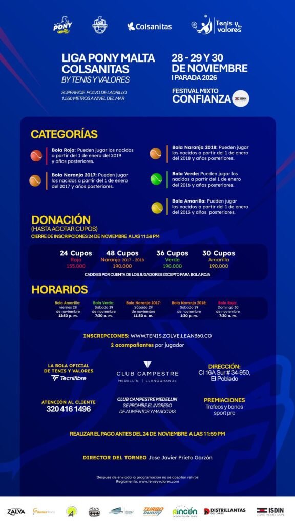 🟡Bola Amarilla: ($190.000) Pueden jugar los nacidos a partir del 1 de enero del 2013 y años posteriores. ( UTR NO SUPERIOR A 5.99)